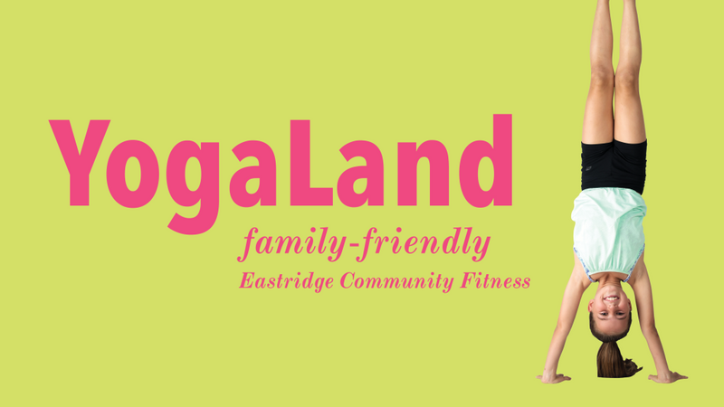 Join us for YogaLand – a new family-friendly fitness class at Eastridge Center! All ages, all levels welcome! This is a kid-friendly family fitness class that combines yoga, gymnastics, and wellness practices families can learn and practice together. No drop-offs! This is for parents and kids to be active in the same class!